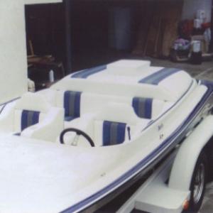 This Eliminator boat was taken apart and brought back to showroom quality we replaced the carpets and reupholstered the seats.
